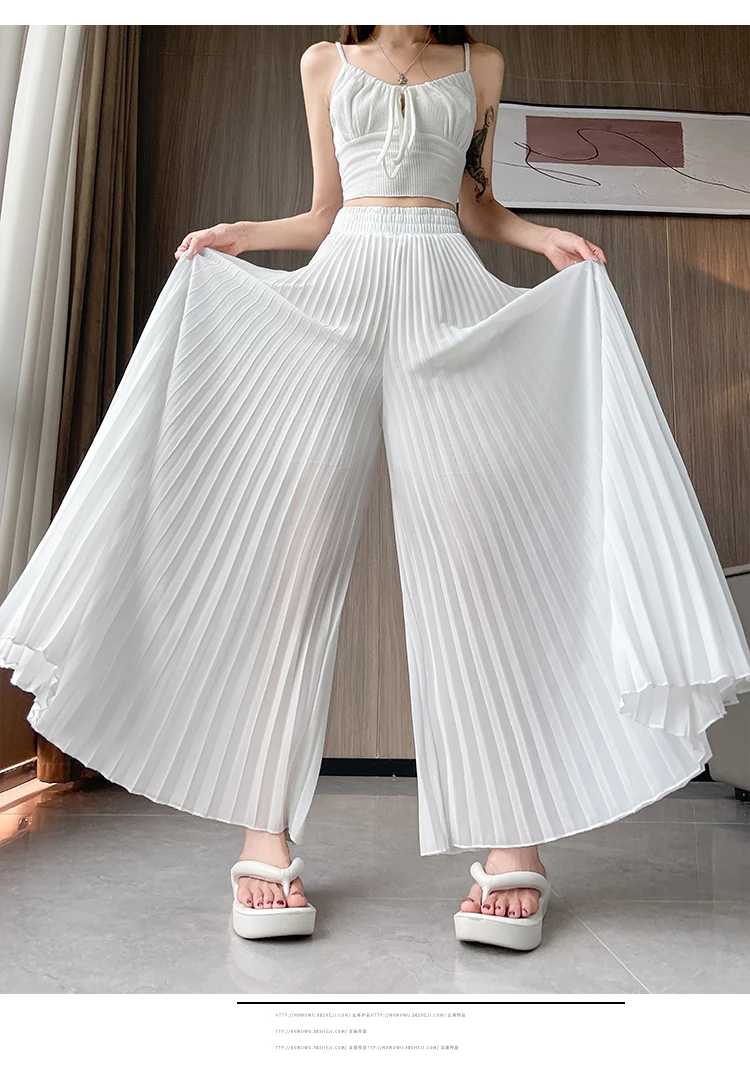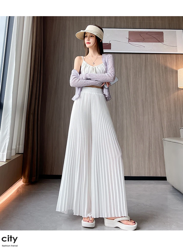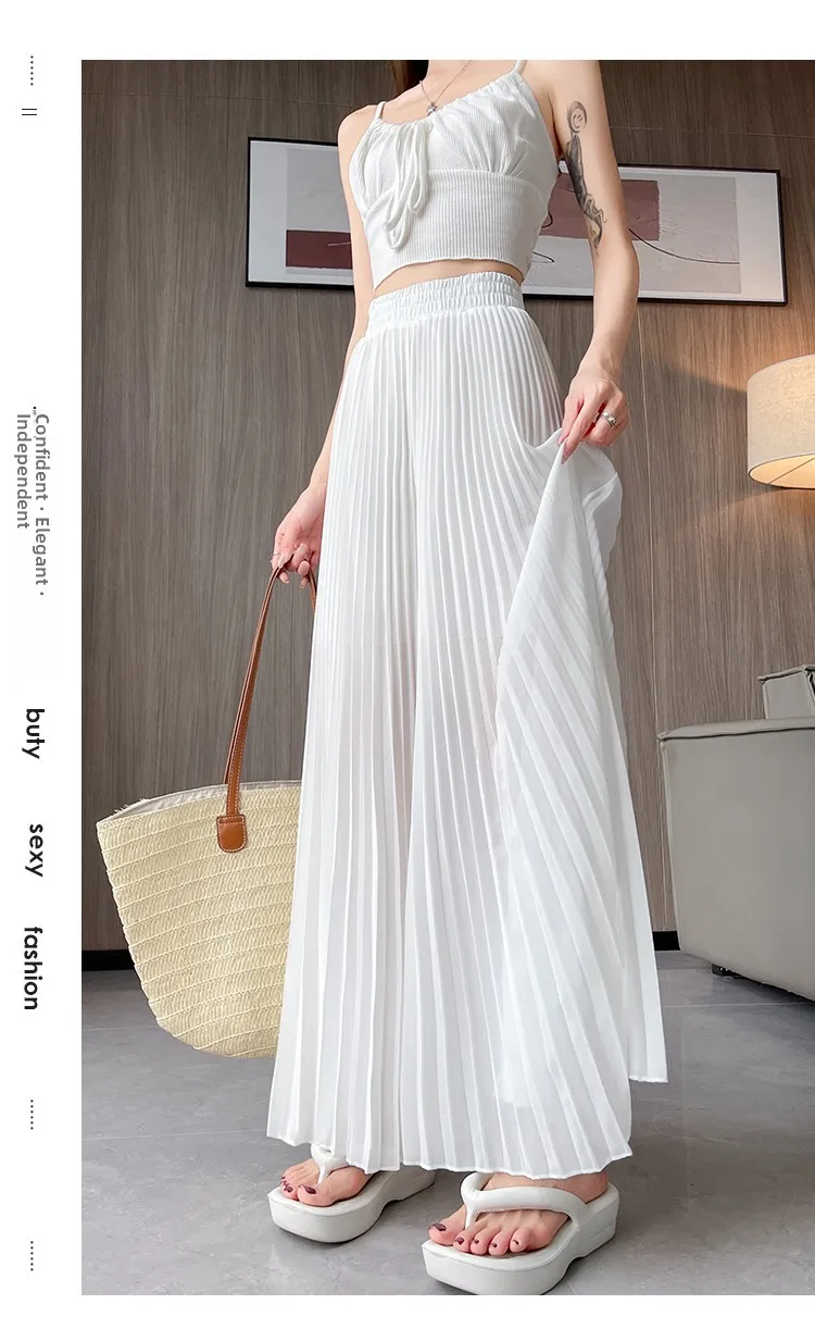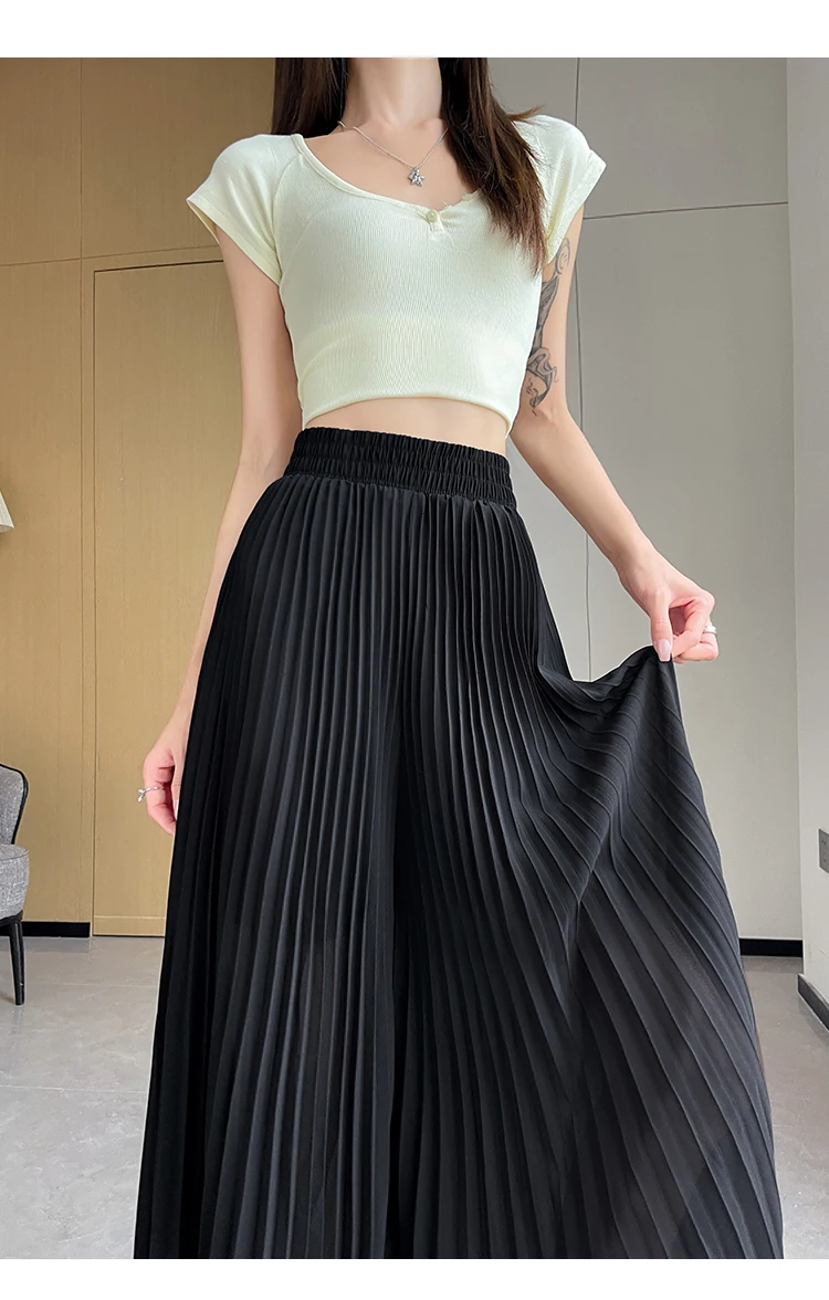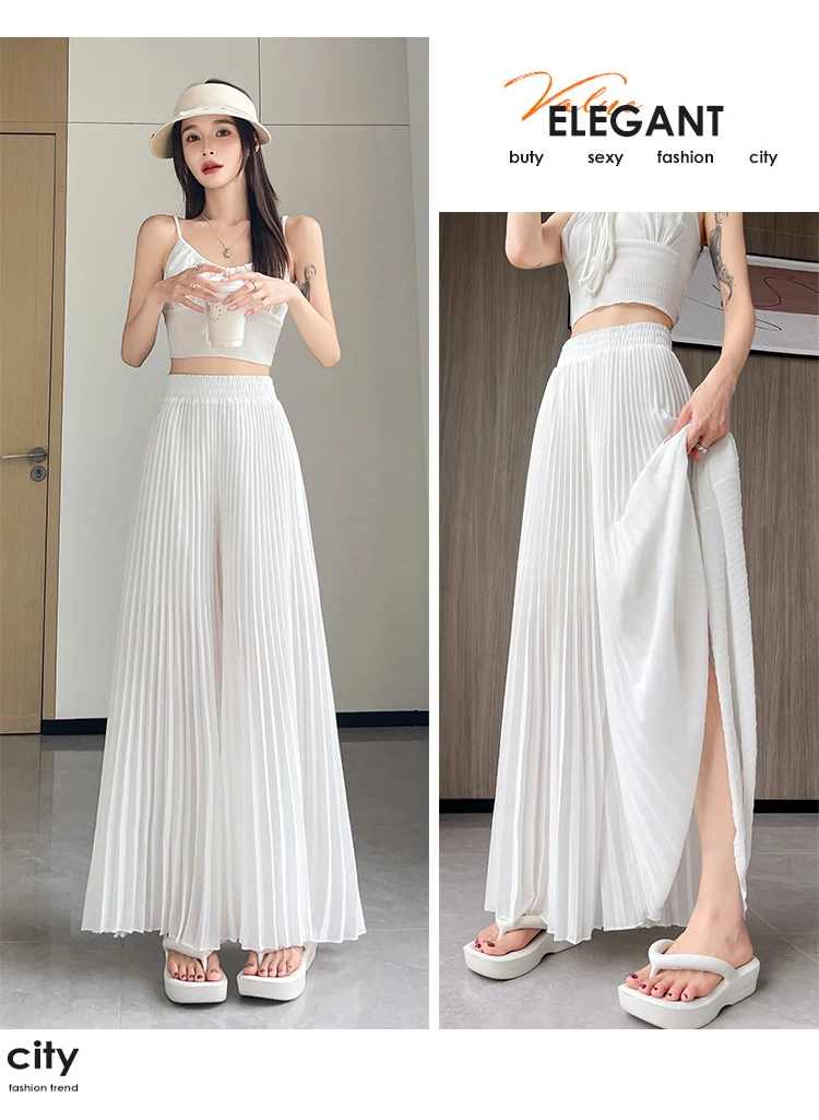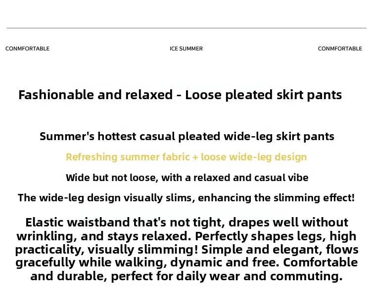 O modelo de calça larga destas peça oferece um ajuste relaxado e confortável, ideal para o verão.