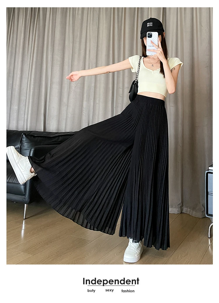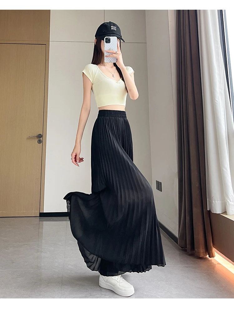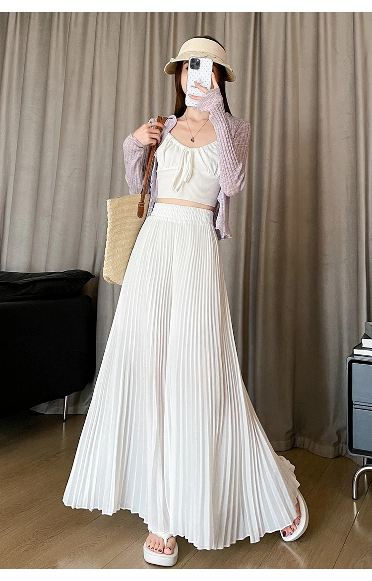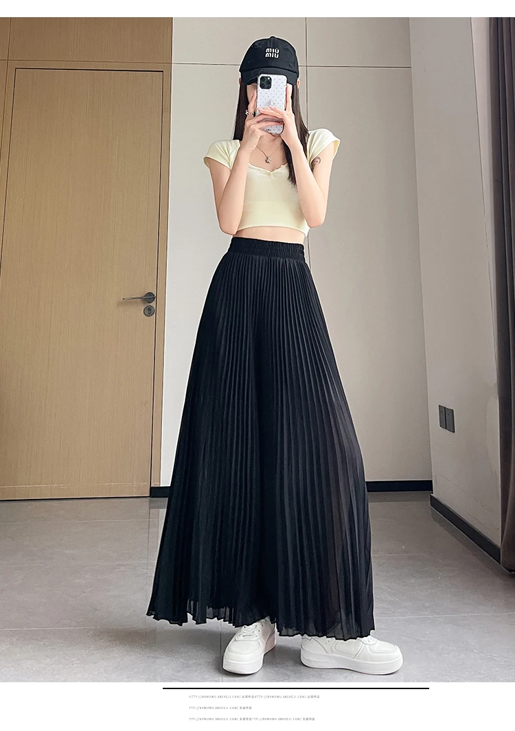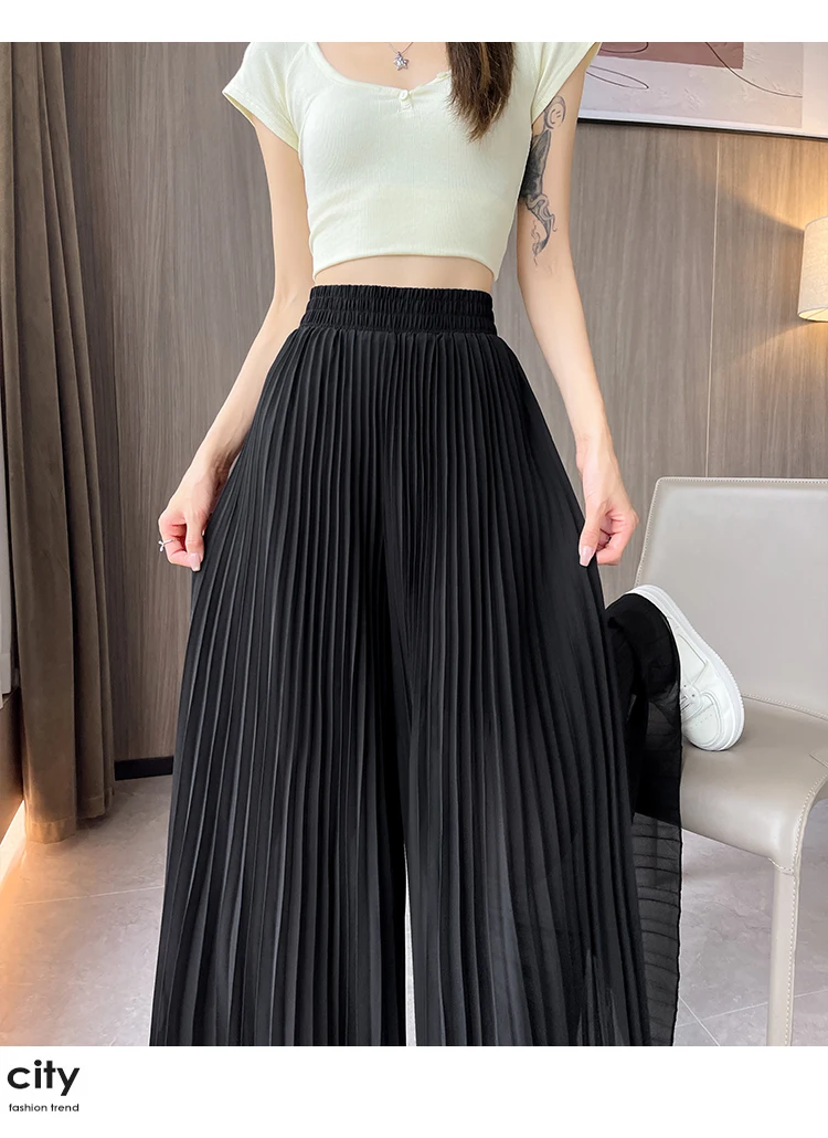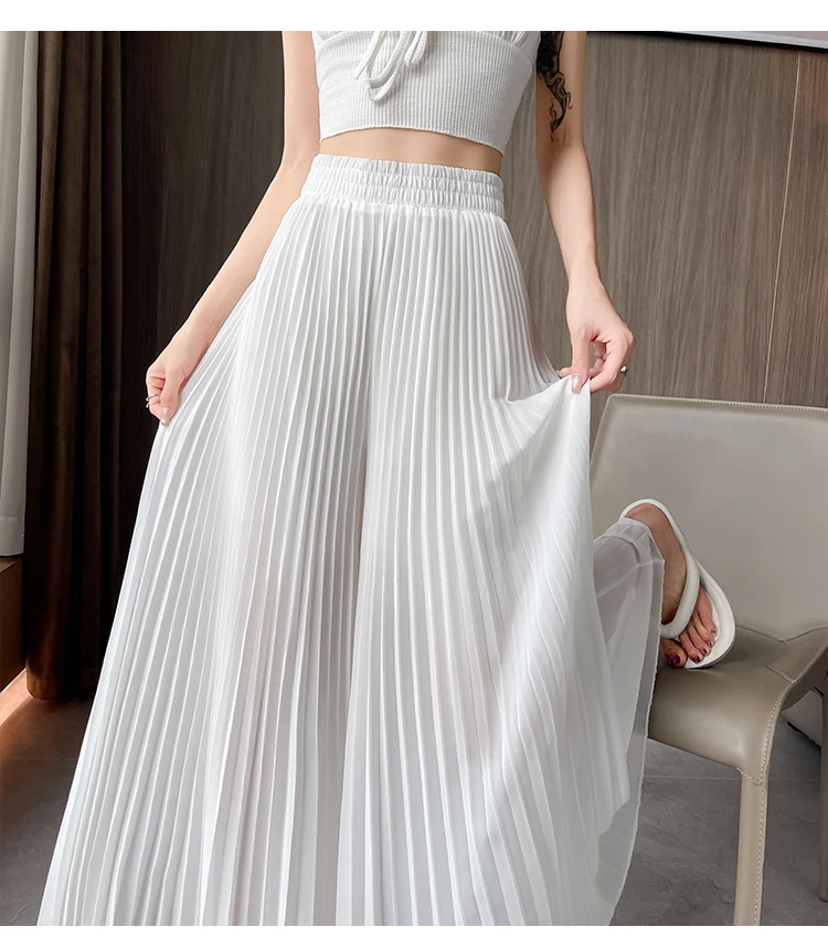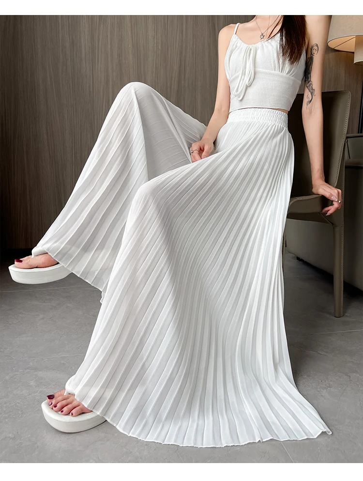 O modelo de calça larga destas peça oferece um ajuste relaxado e confortável, ideal para o verão.