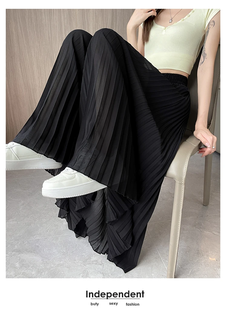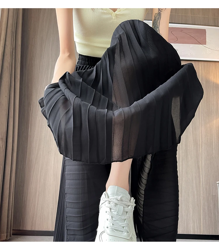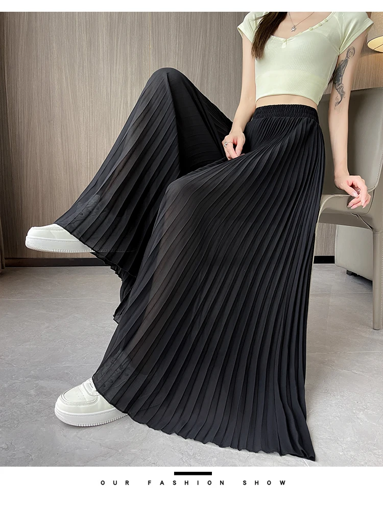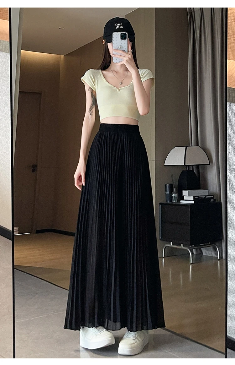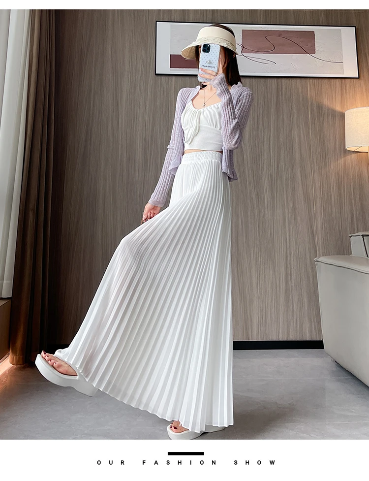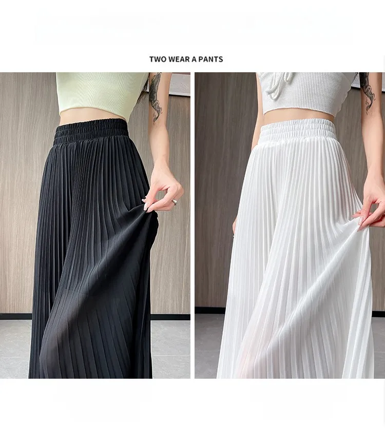 O modelo de calça larga destas peça oferece um ajuste relaxado e confortável, ideal para o verão.