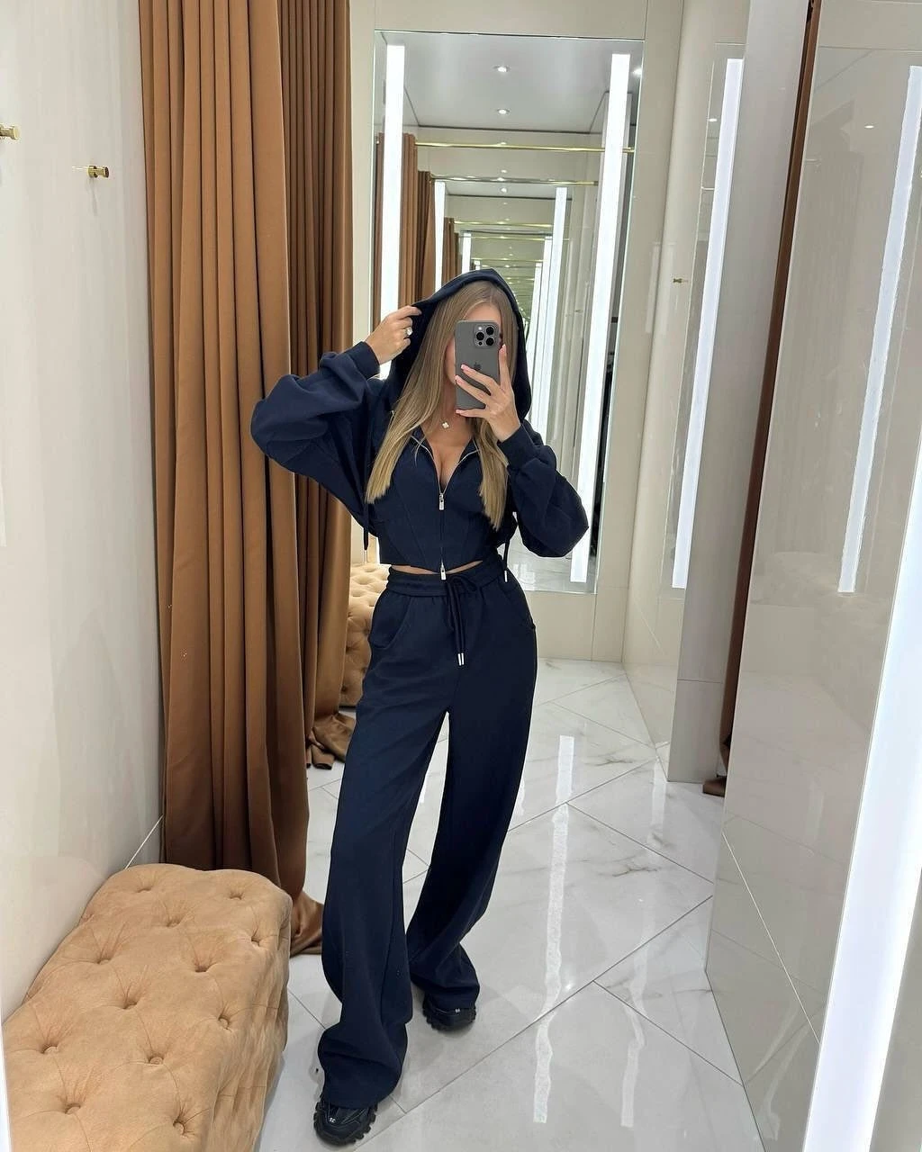 Este conjunto é adequado para todas as mulheres, independentemente da idade ou tamanho, tornando-o uma escolha versátil para qualquer mulher.